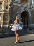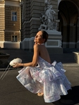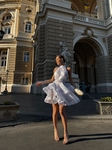 Ефектна сукня з легкої органзи з відкритою спиною та об’ємною багатошаровою спідницею. Підкреслює талію, виглядає ніжно й святково, ідеально підходить для особливих подій та фотосесій.