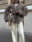 Стильна укорочена куртка в форматі кимоно, яка чудово поєднує комфорт і сучасний крій.Тканина — плащівка жата, не пропускає вітер і добре тримає форму.Утеплення — синтепон 80, що забезпечує комфорт у прохолодну осінньо-весняну погоду (до +5°C).Підкладка тепла, приємна до тіла.У комплекті пояс, який підкреслює талію та додає жіночності силуету.Розміри: С/М, L/XLСМ — груди 108 см, талія 110 см, довжина по спинці 64 см, рукав від горловини 79 смLXL — груди 110 см, талія 112 см, довжина по спинці 65 см, рукав від горловини 80 см