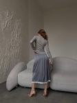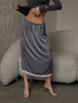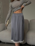 Вишукана сатинова спідниця, яка підкреслює жіночність і створює ефект дорогого, доглянутого образу. Гладка сатинова тканина має легкий благородний блиск, красиво лягає по фігурі та приємна до тіла.Комфортна резинка на талії забезпечує ідеальну посадку а делікатне мереживо по низу додає образу нотку романтики та витонченості.