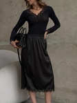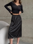 Вишукана сатинова спідниця, яка підкреслює жіночність і створює ефект дорогого, доглянутого образу. Гладка сатинова тканина має легкий благородний блиск, красиво лягає по фігурі та приємна до тіла.Комфортна резинка на талії забезпечує ідеальну посадку а делікатне мереживо по низу додає образу нотку романтики та витонченості.